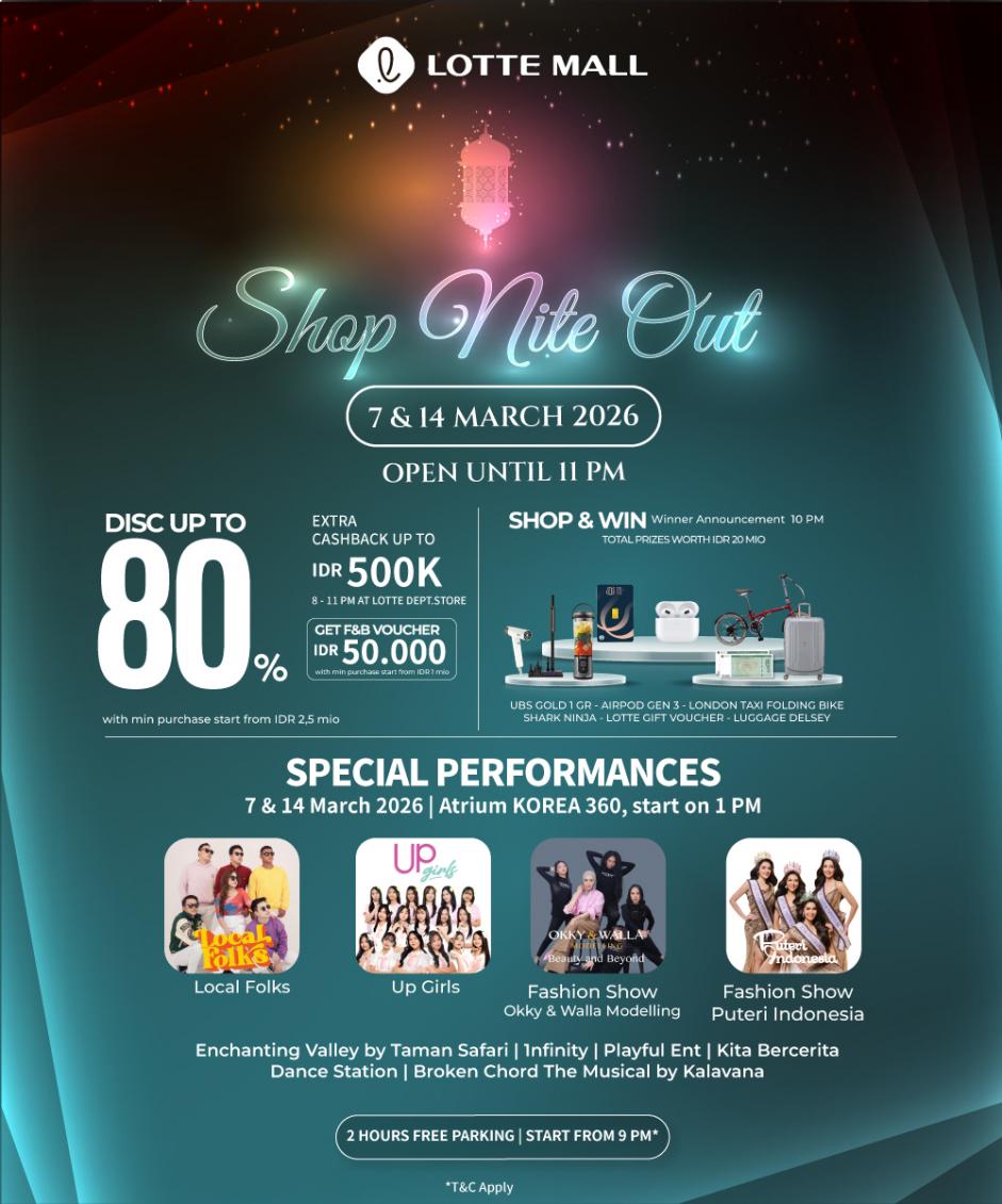 #ShopNiteOut2026 #LotteMall #MidnightSale #DiskonHingga80 #Cashback500K #ShopAndWin #NightShopping